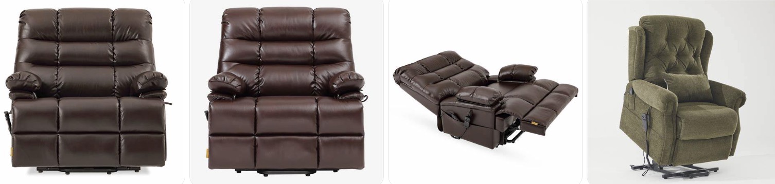 A value-oriented path into the 500-lb class. Look for listings with reinforced steel bases, longer footrests, and firm, high-density cushions that won’t pancake. Expect straightforward remotes and easy-clean fabrics. Always confirm the exact capacity and seat dimensions for the specific SKU.